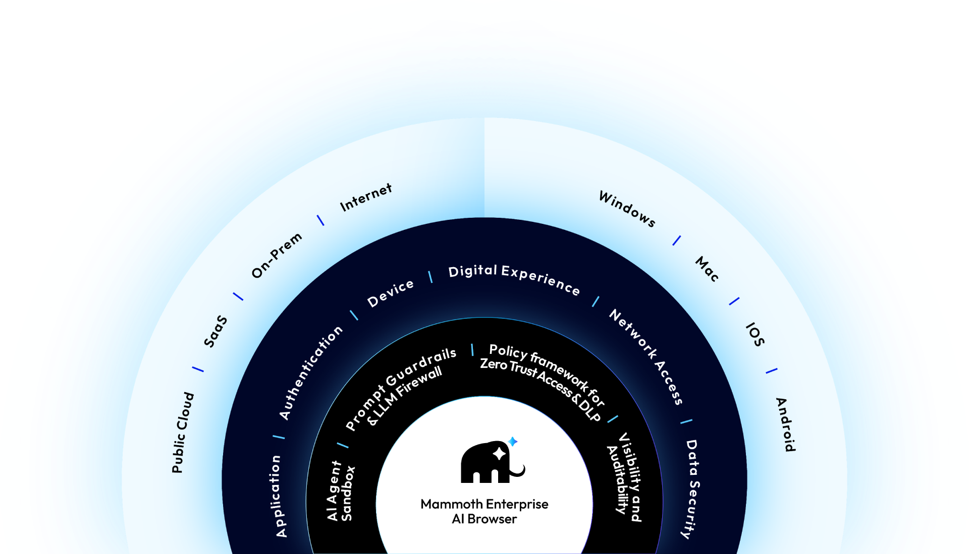 Mammoth combines the intelligence of AI-driven browsing with enterprise-level guardrails, compliance, and control — so every click, prompt, and workflow stays secure.