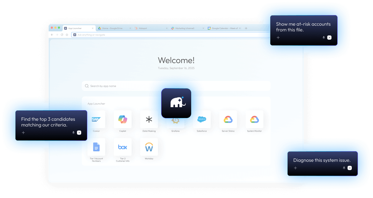 Empower every team to use AI safely. Mammoth Enterprise AI Browser unifies productivity, data-loss prevention, insider-threat protection, and zero-trust controls — all in one secure workspace.